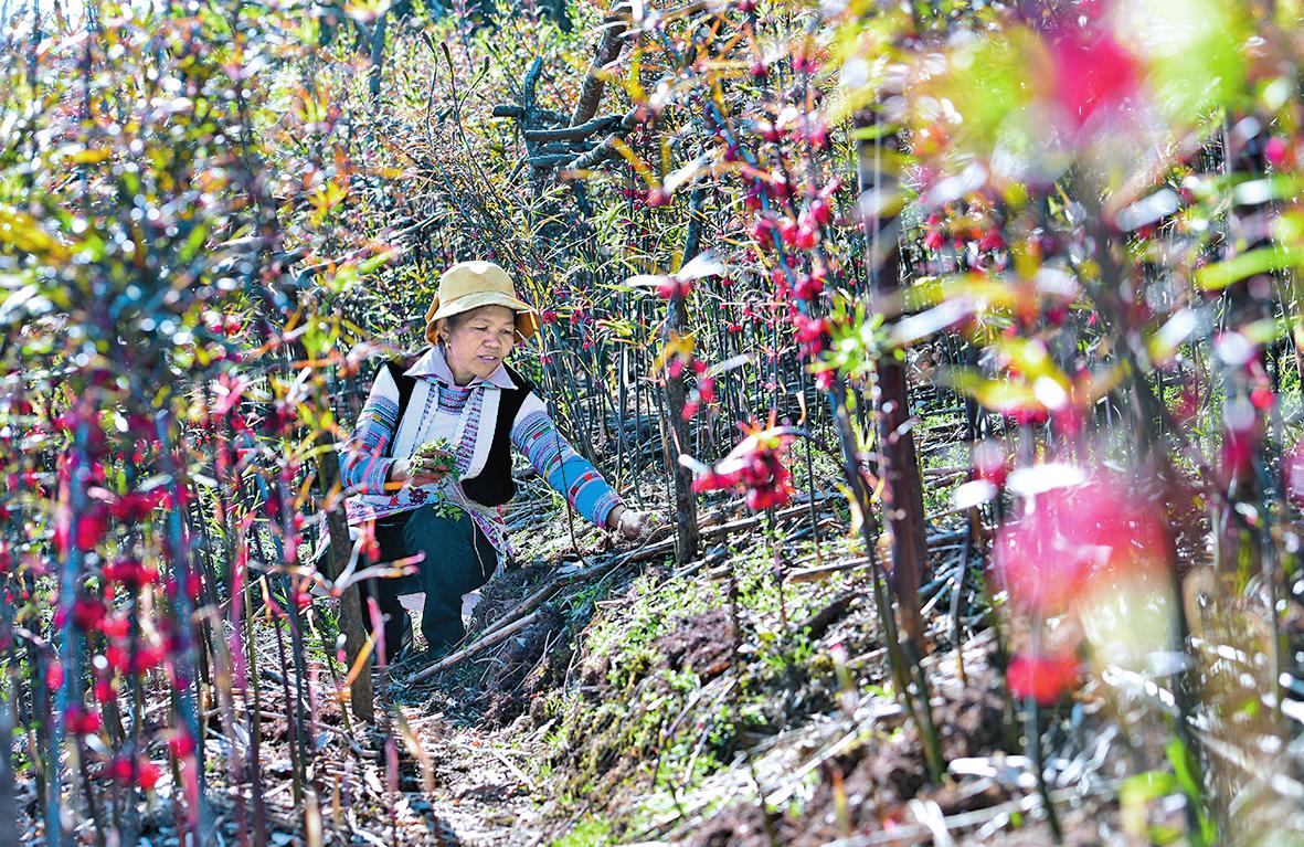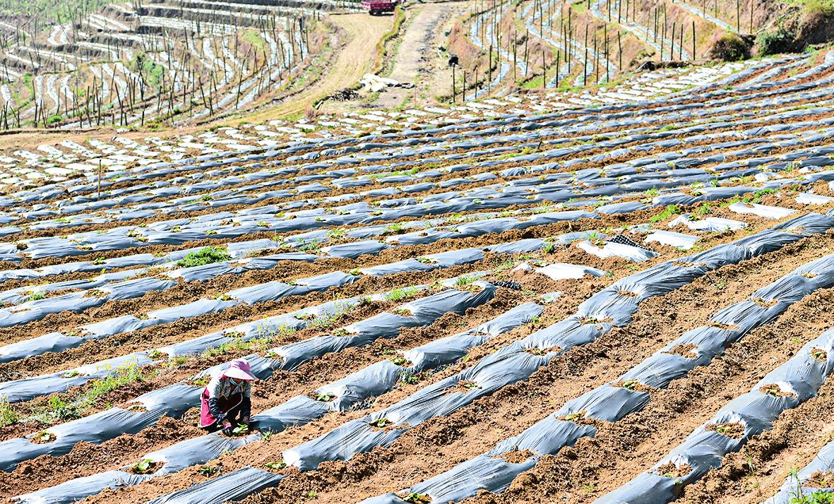 近日,新平縣建興鄉(xiāng)馬鹿社區(qū)老箐小組村民田秀英在地里給黃精除草。老箐小組家家戶戶種植黃精、重樓、露水草等中藥材,其中黃精400畝、重樓300畝、露水草100畝,戶均年收入能達15萬元。 玉溪日報全媒體記者 李瑞銘 邵畢然 攝