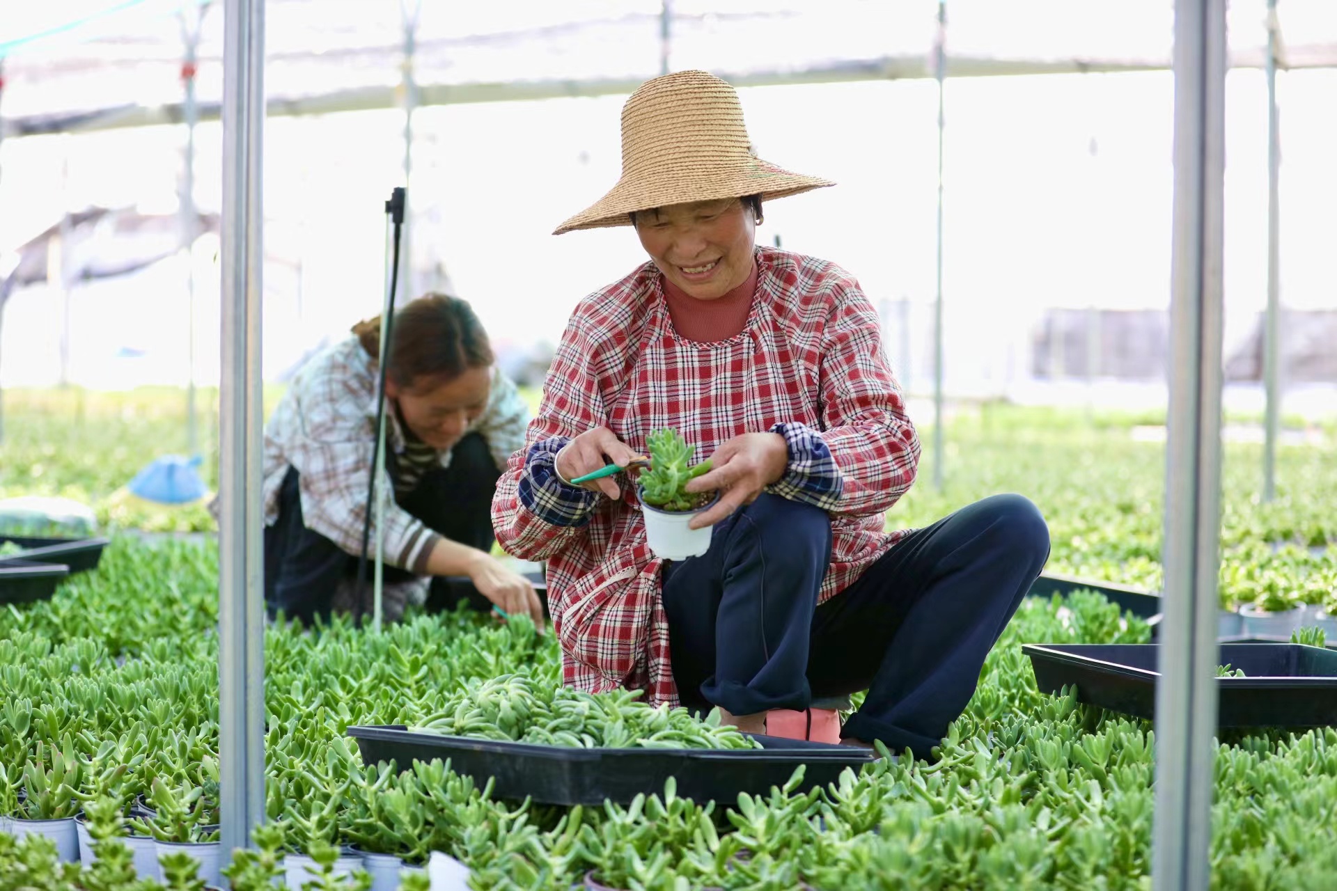 村民在多肉種植基地打工,實(shí)現(xiàn)家門口就業(yè)。 近日,記者走進(jìn)江川區(qū)安化鄉(xiāng)光山村多肉種植基地,放眼望去,一個(gè)個(gè)大棚錯(cuò)落有致布滿山坡。大棚里,形態(tài)各異的多肉植物色彩斑斕,肉嘟嘟、水靈靈,十分好看。近年來,安化鄉(xiāng)不斷探索調(diào)整產(chǎn)業(yè)結(jié)構(gòu),依托好山好水優(yōu)勢,發(fā)展多肉種植。2021年,光山村1500畝多肉植物銷售收入接近2000萬元。 好山好水出好“肉” 2018年底,已種了3年多肉植物的陳坤通過多次調(diào)查、試驗(yàn)、測試,最終選定光山村作為擴(kuò)大多肉種植的基地,流轉(zhuǎn)了60畝土地,開始建蓋大棚,種植多肉。在他的精心照管、經(jīng)營下,短短4年,基地面積從60畝擴(kuò)大到600多畝?!鞍不l(xiāng)光山村水質(zhì)好、光照足、通風(fēng)好,關(guān)鍵是水里的EC值低,通過施用不同的肥料,多肉容易出色?!标惱け硎?。 “我們通過實(shí)行標(biāo)準(zhǔn)化量產(chǎn),保證多肉品質(zhì),打通銷售渠道。幾年來,價(jià)格穩(wěn)定,產(chǎn)品供不應(yīng)求?!标惱そ榻B,整個(gè)基地主要以種植大眾接受度較高的普通多肉品種為主,線上、線下銷售同步推進(jìn),主打省外市場。與此同時(shí),陳坤選擇了11個(gè)變異優(yōu)選品種送到專業(yè)公司進(jìn)行培育繁殖,逐步拓展高端市場,探索標(biāo)準(zhǔn)化生產(chǎn)、個(gè)性化定制的路子。 隨著多肉種植基地產(chǎn)銷鏈不斷健全,多肉園區(qū)規(guī)模逐漸擴(kuò)大,陳坤開始探索地栽多肉植物。安化鄉(xiāng)黨委、政府多次與陳坤溝通交流,共同探討如何通過一產(chǎn)多肉種植帶動(dòng)三產(chǎn)觀光旅游,進(jìn)一步提升光山多肉品牌效應(yīng),聯(lián)合打造“花漫光山、產(chǎn)村融合”田園綜合體,把“小肉肉”做成大產(chǎn)業(yè)。目前,核心種植區(qū)100畝土地已完成流轉(zhuǎn),項(xiàng)目正有序推進(jìn)。 “小肉肉”種成致富好產(chǎn)業(yè) “基地成立時(shí)我就在這里打工了,每個(gè)月2500元的收入,我自己的生活解決了,還能幫補(bǔ)兒女一點(diǎn)?!痹?jīng)的建檔立卡戶江玉仙說。江玉仙是光山村李家營村民小組的村民,老伴去世后,她來基地打工,現(xiàn)在已經(jīng)是熟練工,“公司中午管一頓飯,年節(jié)還有獎(jiǎng)金,村民在家門口就可以打工”。安化鄉(xiāng)黨委書記宋磊介紹,在光山多肉種植基地,像江玉仙這樣在家門口打工的村民達(dá)200多人,部分還是曾經(jīng)的建檔立卡戶。 看著陳坤種植多肉風(fēng)生水起,部分有想法的村民紛紛向陳坤學(xué)習(xí)種植技術(shù)。陳坤也不吝嗇,不僅免費(fèi)提供技術(shù)支持,還幫助種植戶統(tǒng)一價(jià)格、統(tǒng)一銷售?!肮?基地+合作社+農(nóng)戶”的生產(chǎn)銷售模式逐漸形成。在陳坤的帶動(dòng)下,光山村多肉種植戶發(fā)展到16戶,合計(jì)面積達(dá)1500畝,種植品種三四百個(gè),2021年銷售收入接近2000萬元,是目前玉溪最大的多肉種植基地。陳坤的公司玉溪江川坤宇花卉有限公司成為安化鄉(xiāng)第一個(gè)“扶貧車間”,光山村成為遠(yuǎn)近聞名的多肉種植專業(yè)村。 今后如何依托優(yōu)勢,把多肉產(chǎn)業(yè)做大做強(qiáng)。宋磊介紹,目前安化鄉(xiāng)正以“花漫光山、產(chǎn)村融合”田園綜合體、“山鄉(xiāng)彝家”生態(tài)休閑綜合體、爛泥箐鄉(xiāng)居生活聚落文旅項(xiàng)目為抓手,以青云路建成通車為契機(jī),打造集觀光休閑、民宿康養(yǎng)、農(nóng)事體驗(yàn)、文創(chuàng)活動(dòng)、特色餐飲為一體的鄉(xiāng)村游線路,以促進(jìn)農(nóng)業(yè)增效、農(nóng)民增收,不斷壯大村集體經(jīng)濟(jì),助力鄉(xiāng)村振興。(玉溪日報(bào)全媒體記者 湯思琪/文 沈陽/圖) |