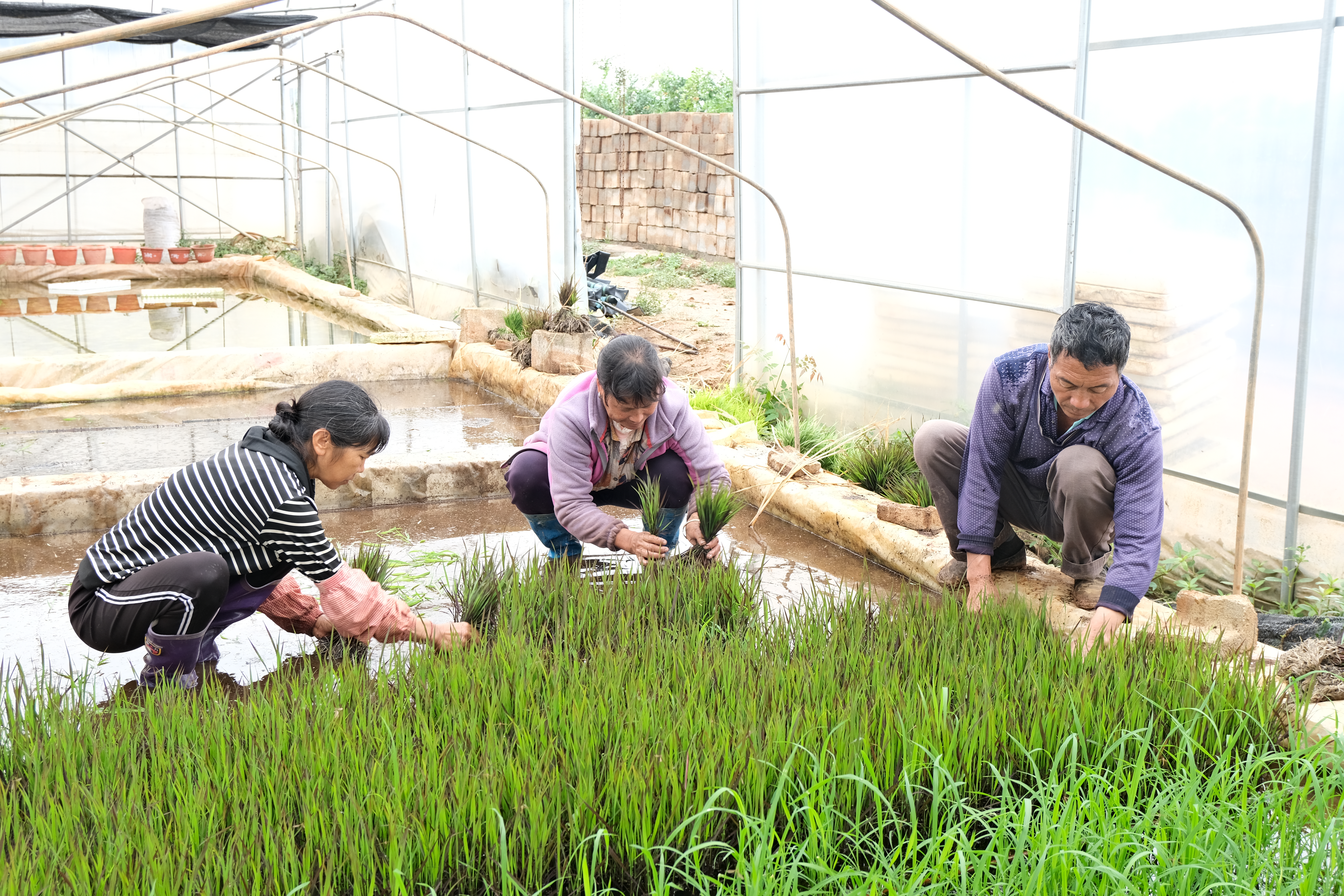 易門樂豐合作聯(lián)社示范基地的工人正在侍弄秧苗