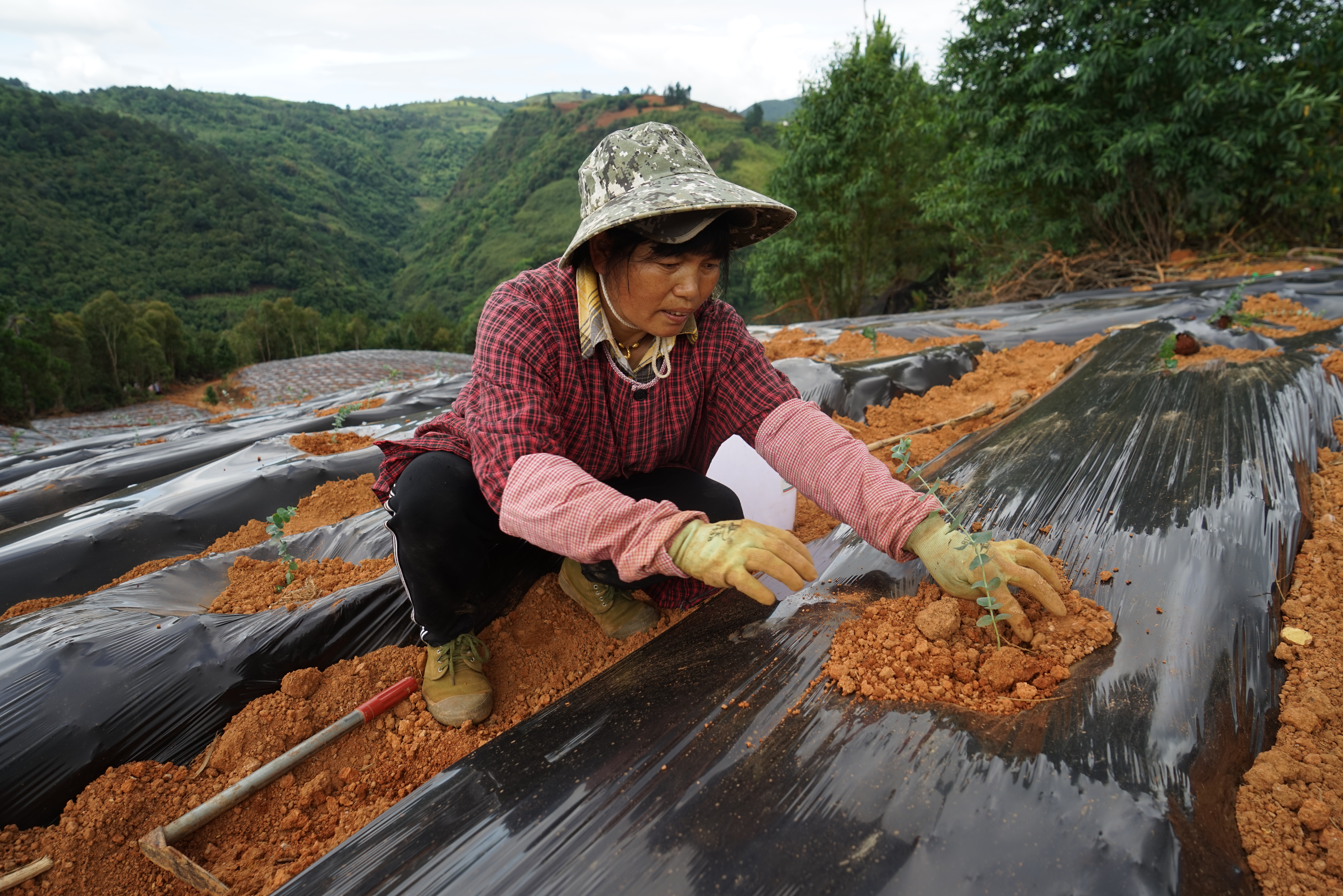 近日,在峨山縣雙江街道新村村委會小法克組的田間地頭,村民正忙著覆膜、栽種、澆水……幾天時間,數(shù)十畝尤加利栽種已近尾聲。