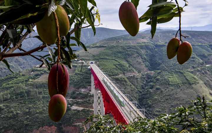 復興號列車通過中老鐵路元江特大橋(6月1日攝)。 新華社記者 江文耀 攝(新華社6月20日發(fā))