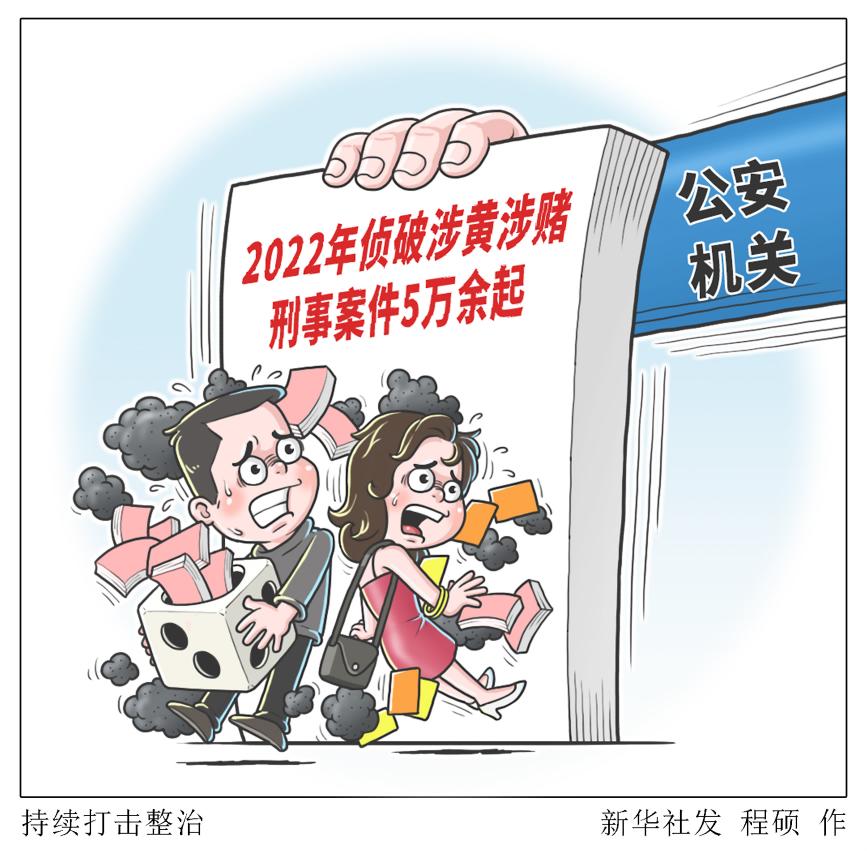 全國公安機關(guān)治安部門緊盯社會治安形勢和黃賭違法犯罪動態(tài)趨勢,持續(xù)依法嚴(yán)厲打擊組織賣淫、開設(shè)賭場、聚眾賭博等突出違法犯罪活動,整治黃賭治安亂象。2022年,全國共偵破涉黃涉賭刑事案件5萬余起,查處黃賭治安案件40余萬起。 程碩/作(新華社3月27日發(fā))