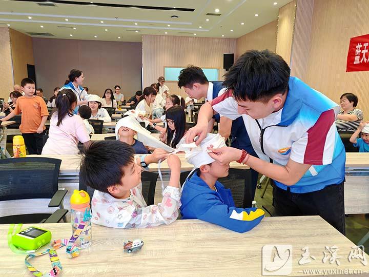 實踐團成員現(xiàn)場教青少年包扎。