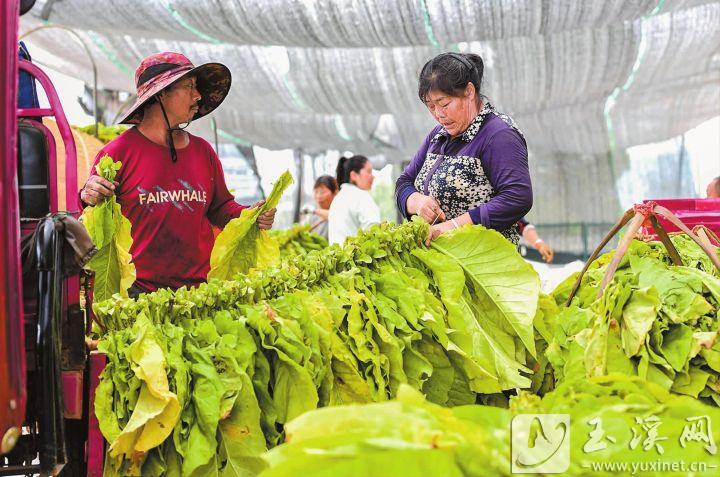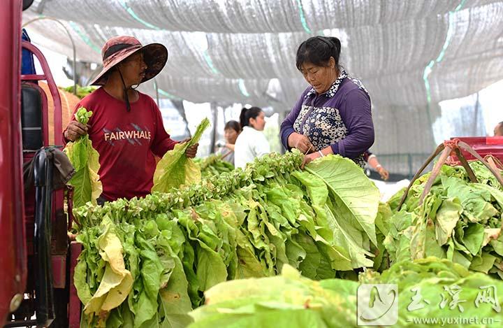 7月13日,在江川區(qū)九溪鎮(zhèn)雞窩村委會小雞窩村煙葉集中烘烤點,煙農(nóng)忙著把剛采摘的煙葉進行分揀和編扎,準備烘烤。“今年我家種了5畝烤煙,今天是第一次采摘,希望能有個好收成。”煙農(nóng)王艷生說。 (玉溪市融媒體中心記者 曾永洪 攝)