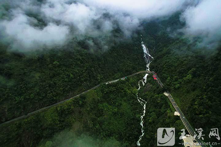 新平哀牢山南恩瀑布的壯美景色,吸引了眾多游客駐足欣賞。