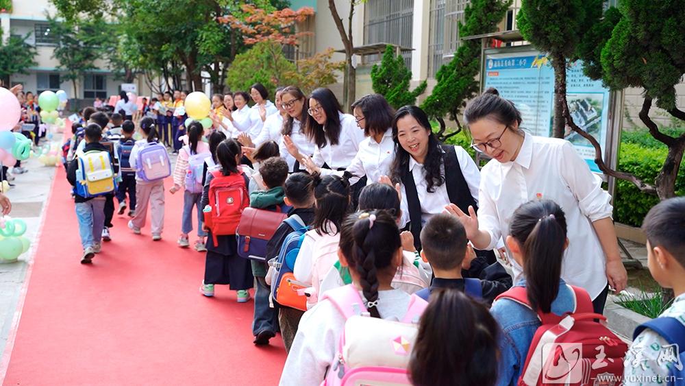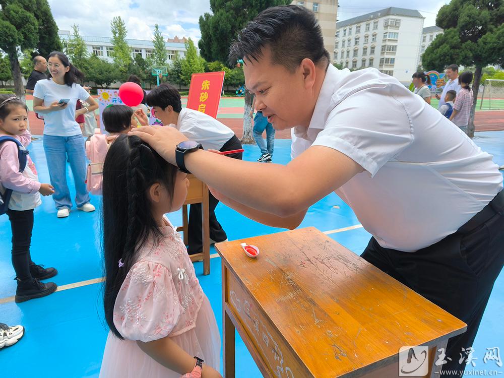 玉溪第四小學(xué)將傳統(tǒng)禮儀與入學(xué)儀式相結(jié)合,新生踏上紅毯、穿過“啟智門”、敲響“立志鼓”,老師為新生“額點朱砂”,送上“聰明伶俐、志存高遠(yuǎn)”的美好祝福,讓傳統(tǒng)禮儀成為新生入學(xué)的“文化記憶”。