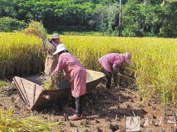 當(dāng)前,易門縣十街鄉(xiāng)的3000余畝水稻陸續(xù)成熟,迎來豐收季。村民們搶抓晴好天氣收割水稻,確保秋糧顆粒歸倉。十街鄉(xiāng)地處低熱河谷地帶,光熱充足、水資源豐富、土壤肥沃,為水稻生長提供了有利條件。當(dāng)?shù)禺a(chǎn)出的稻米顆粒飽滿、香氣濃郁、口感軟糯,深受市場青睞。近年來,十街鄉(xiāng)積極推廣優(yōu)質(zhì)水稻品種,依托高效田間管理技術(shù),多措并舉保障秋糧穩(wěn)產(chǎn)增產(chǎn),為實(shí)現(xiàn)全年糧食豐產(chǎn)豐收奠定堅(jiān)實(shí)基礎(chǔ)。(特約通訊員 劉大鵬 通訊員 劉珊珊 朱巧芬 攝)