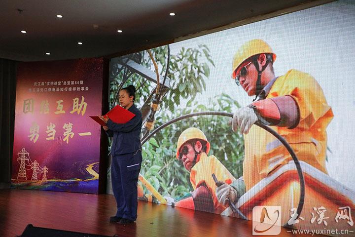 近日,元江縣“文明講堂”總堂第86期在玉溪元江供電局舉行?;顒蝇F(xiàn)場,縣屬各文明單位干部職工及玉溪元江供電局的干部員工齊聚一堂,通過誦經(jīng)典、講故事、拜師禮等多種形式,展示電力人“敢于奉獻(xiàn)、勇于擔(dān)當(dāng)”的工作作風(fēng),傳遞文明信息和道德力量,營造團(tuán)結(jié)奮進(jìn)、昂揚(yáng)向上的濃厚氛圍。通訊員 楊海潔 攝