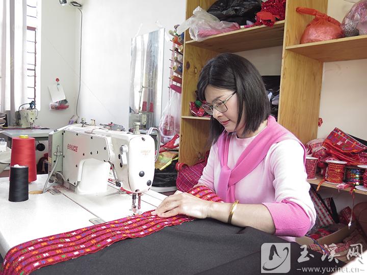 2015年,刀向梅邁出了關(guān)鍵一步——成立了花腰傣服飾·刺繡工作室。最初工作室只有社區(qū)老年活動(dòng)中心的一間房子,僅能做刺繡和織布。隨著規(guī)模擴(kuò)大,工作室搬遷至廢棄的小學(xué)校舍,占地面積達(dá)1.2畝,之后的建設(shè)陸續(xù)投資72萬(wàn)余元。如今的工作室已發(fā)展成一個(gè)集參觀(guān)、體驗(yàn)、生產(chǎn)、銷(xiāo)售為一體的花腰傣民族文化傳習(xí)館。傳統(tǒng)服飾展示區(qū)陳列著花腰傣三個(gè)支系的女子服裝;織布區(qū)讓游客親身體驗(yàn)織錦過(guò)程;機(jī)繡生產(chǎn)車(chē)間里,一臺(tái)8米長(zhǎng)的繡花機(jī)正忙碌工作;展銷(xiāo)廳內(nèi),各式織錦產(chǎn)品琳瑯滿(mǎn)目。