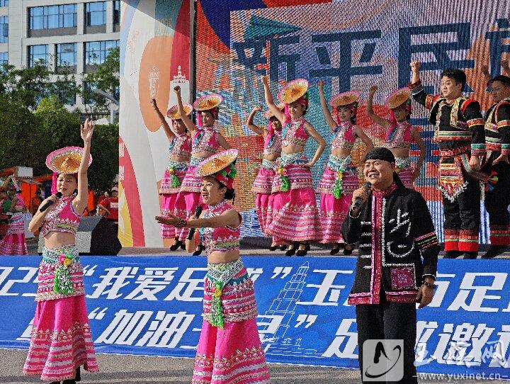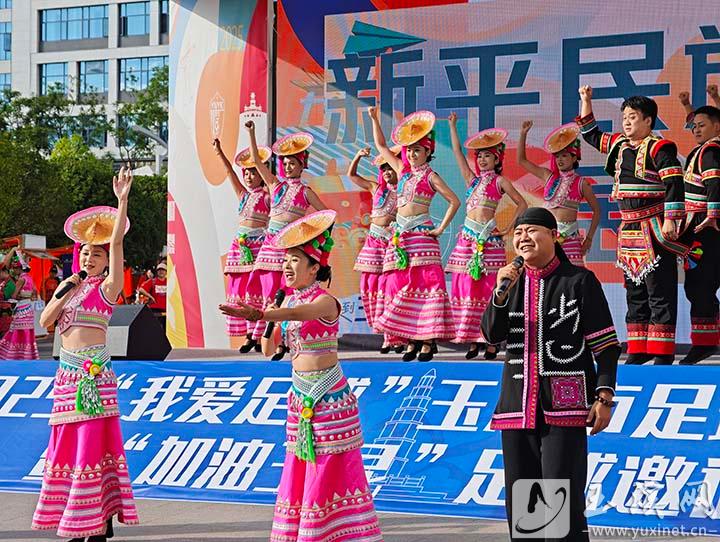 賽前,新平縣在象往大道魔方廣場開展民族歌舞展演活動,讓球迷直觀感受新平文化魅力。(玉溪市融媒體中心記者 李瑞銘 攝)