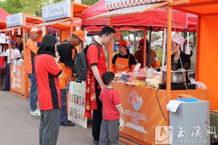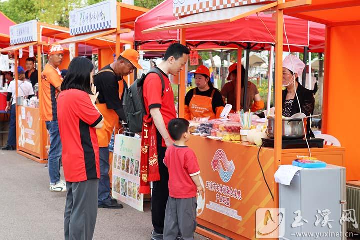 4月25日,賽前眾多球迷游走于各類小吃攤,品嘗玉溪美食。(玉溪市融媒體中心記者 顧世丹 攝)