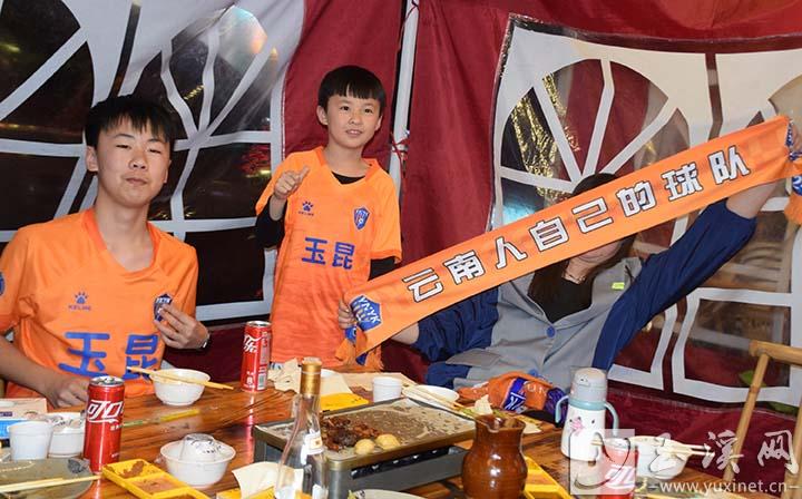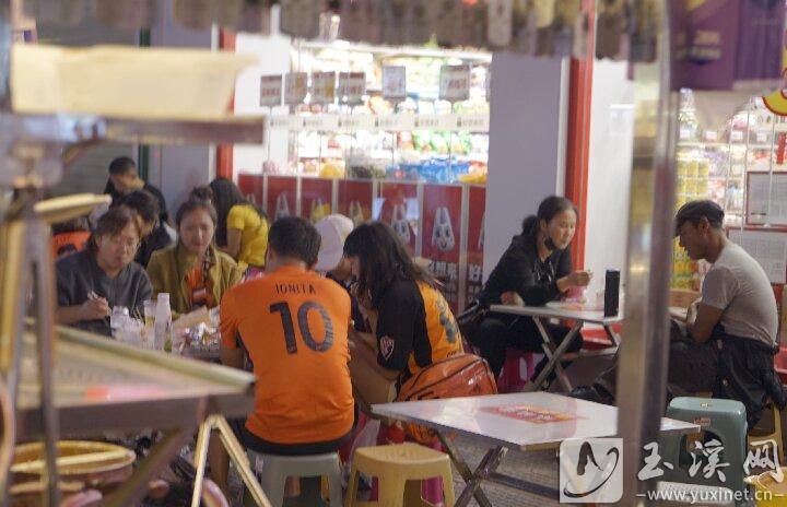 哇家美食坊,球迷賽后小聚,重溫比賽。(玉溪市融媒體中心記者 沈建龍 攝)