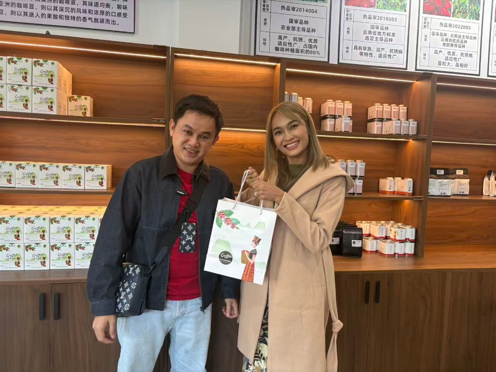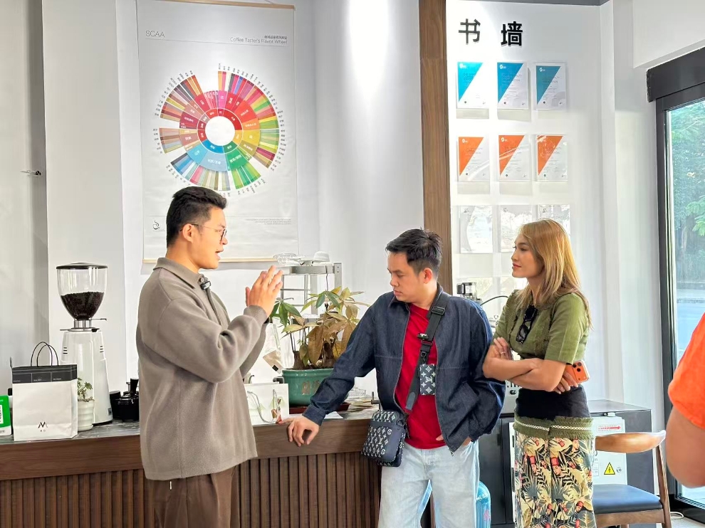 在參觀過程中,這對博主夫婦了解了從一顆種子到一杯好咖啡的完整鏈條。“好咖啡需要‘三位一體’——好生豆、好烘焙、好萃取。”SeinPhyo和Yi邊聽邊記錄,不時提出問題。在品鑒區(qū),他們嘗到了用研究所自種咖啡豆制作的飲品。“口感很均衡,”SeinPhyo評價道,“能嘗出花果香。”Yi則對其中一款帶有紅酒風(fēng)味的豆子特別感興趣。