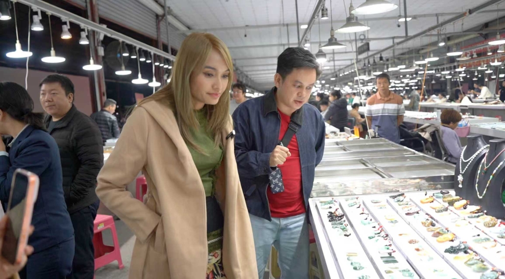 SeinPhyo和Yi在瑞麗德龍珠寶城夜市